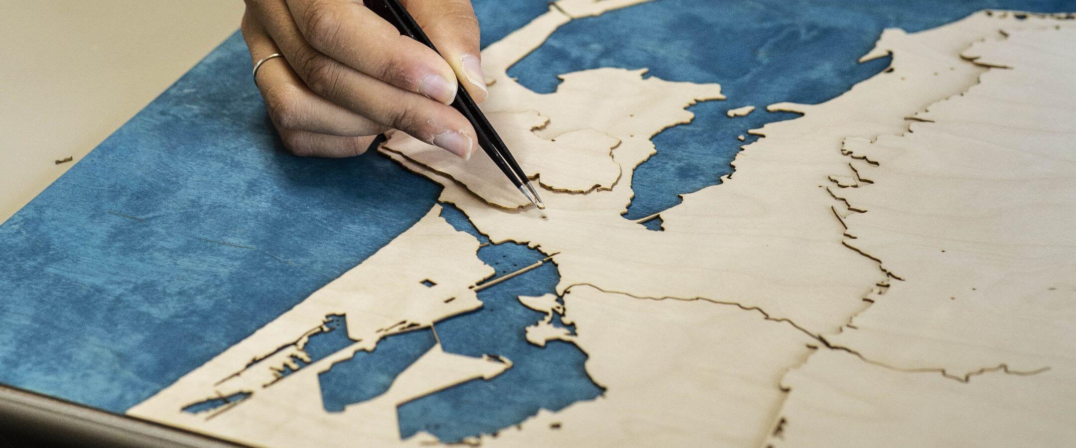 Le relief des paysages iconiques internationaux dans un tableau unique en bois.